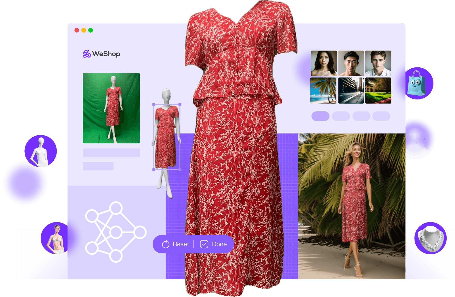 - WeShop AI eliminates the need for studio and location rentals, and offers a variety of model types for pairing with accessories.