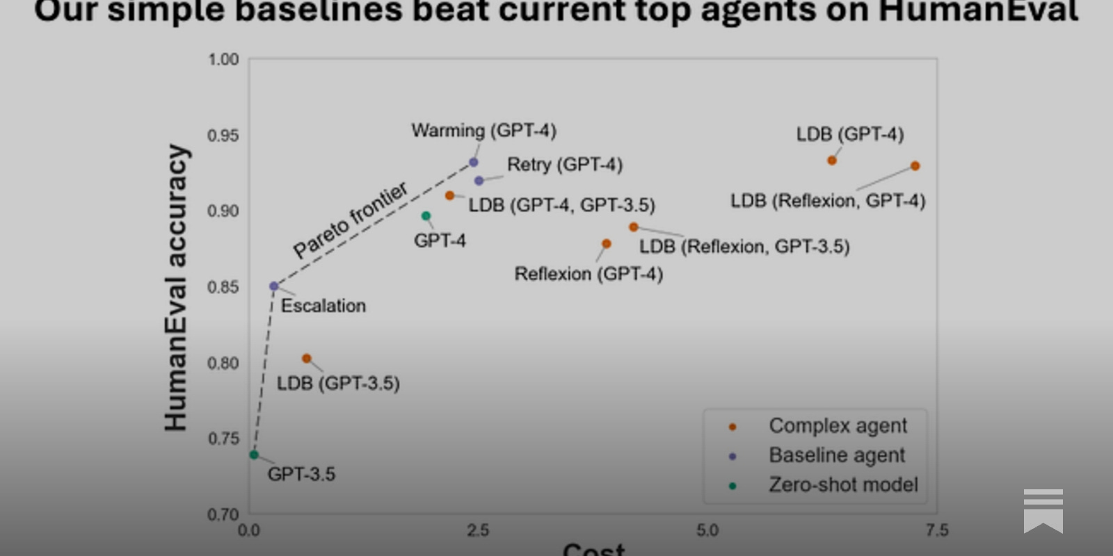 - AI agent accuracy measurements that don’t control for cost aren’t useful. Pareto curves can help visualize the accuracy-cost tradeoff.