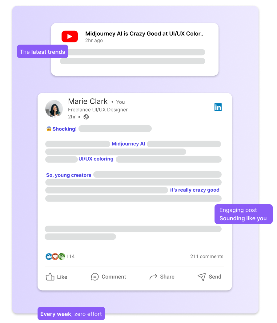- The author created a tool called Becca to help freelancers produce engaging LinkedIn content.