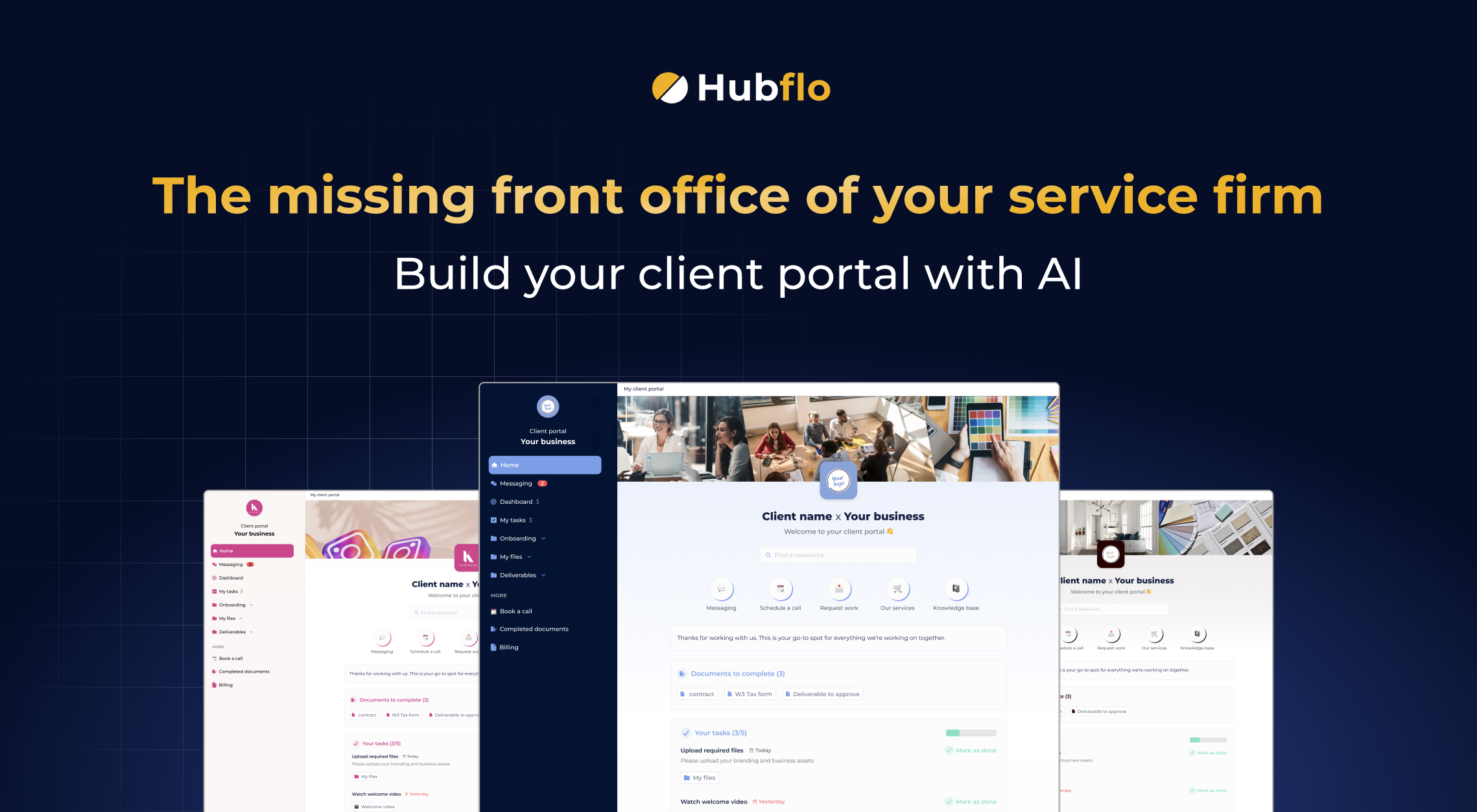 - Hubflo is a next-generation platform designed for modern and streamlined service firms, aiming to improve client satisfaction and retention, reduce client communication, and speed up onboarding and project delivery.