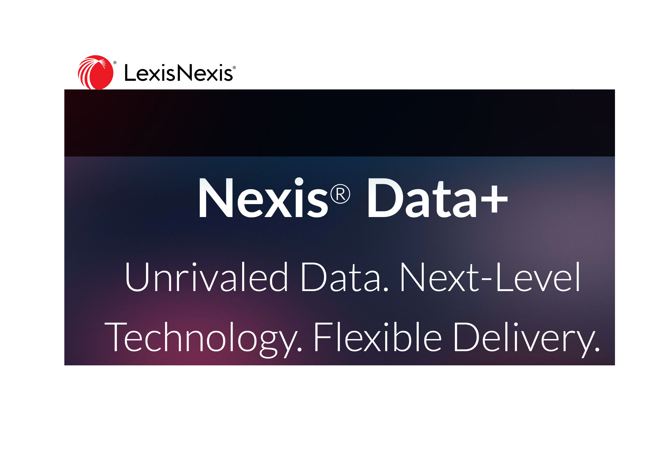 - Nexis Data+ connects to over 23,000 licensed publications, providing access to diverse data types including legal, compliance, and financial data.